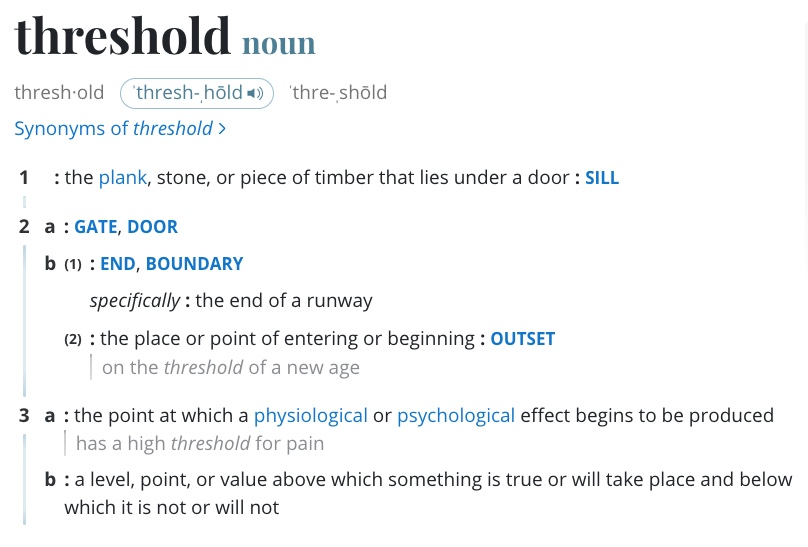 A threshold is an auspicious moment when we stand in suspension– unwilling or unable to keep doing the same worn out thing, but quivering a little in that we don’t really know what comes next. I consider these moments sacred in their capacity to lift the veil and reveal a new way of seeing and being, a fresh sense of purpose and power, an access point to our deepest truth and ultimate liberation.